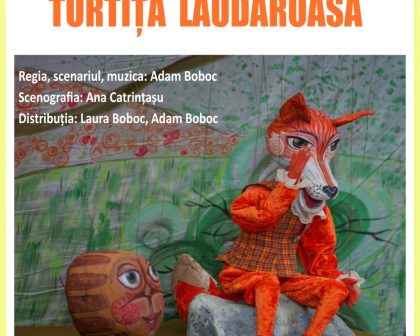 Find out moreTURTIȚA LĂUDĂROASĂ spectacol prezentat la Târgul Toamnei – Apulum Agraria, 8 septembrie, ora 13:00, latura de vest a Cetății Alba Carolina, Alba Iulia Regie, scenariu, muzica: Adam Boboc Scenografie: Ana Catrințașu Distribuție: Laura Boboc; Adam Boboc Durata: 45 minute Public tintă: 3 + Scurtă prezentare: Spectacolul aduce în fața micilor spectatori prin intermediul marionetelor cu fire o poveste foarte veche și foarte interesantă, povestea unei turtițe năzdrăvane. Aceasta își propune să păcălească și să facă haz de oricine îi iese…